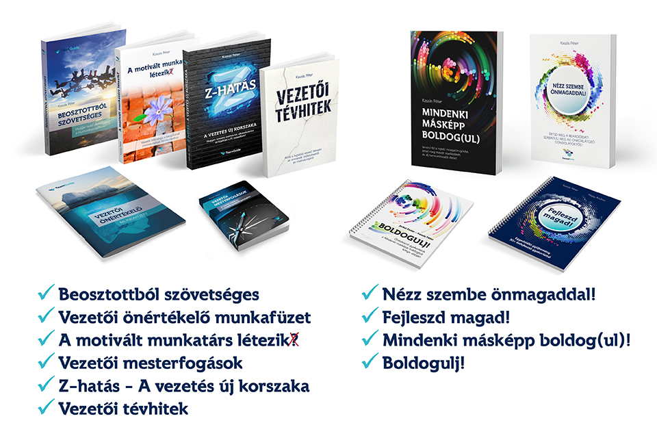 Az összes vezetői és önfejlesztő könyv, illetve a hozzájuk kapcsolódó kiskönyvek és munkafüzetek.